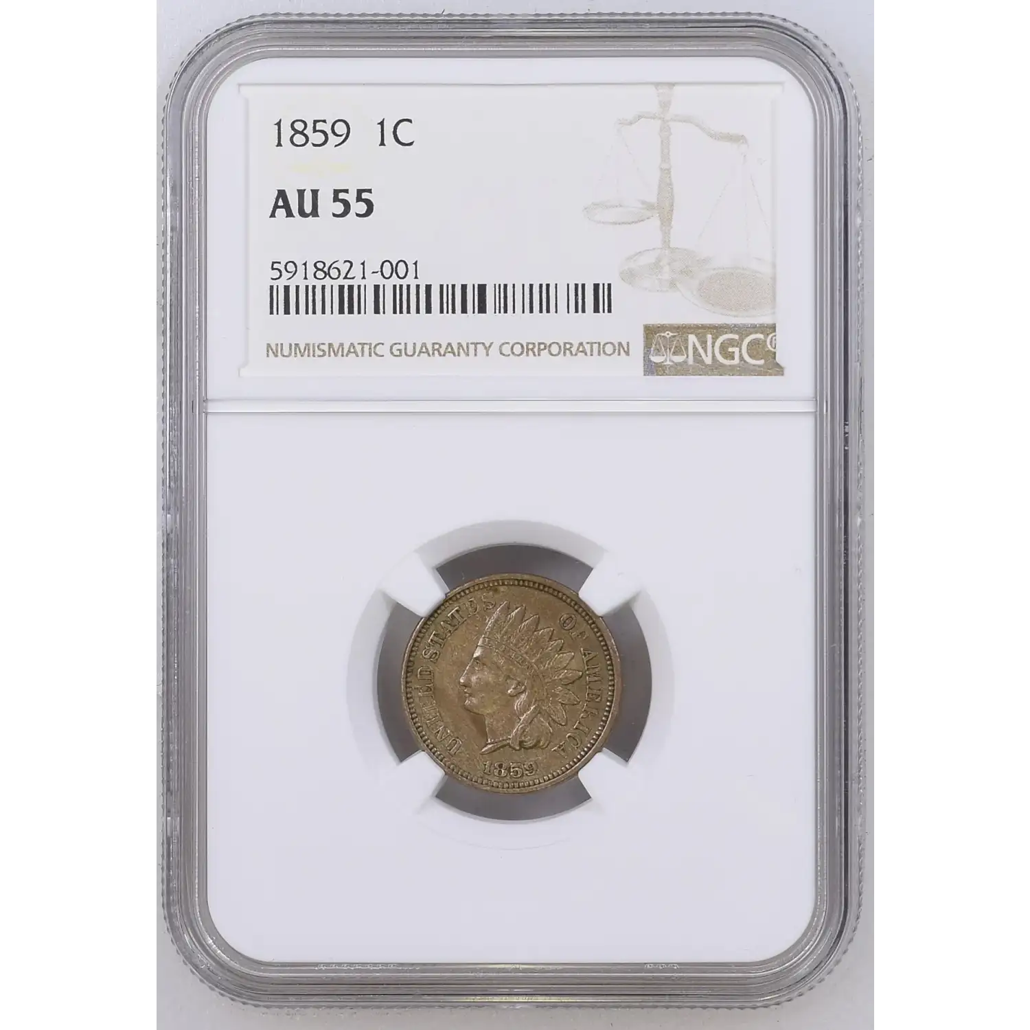1859 Small Cents Indian Head NGC AU-55