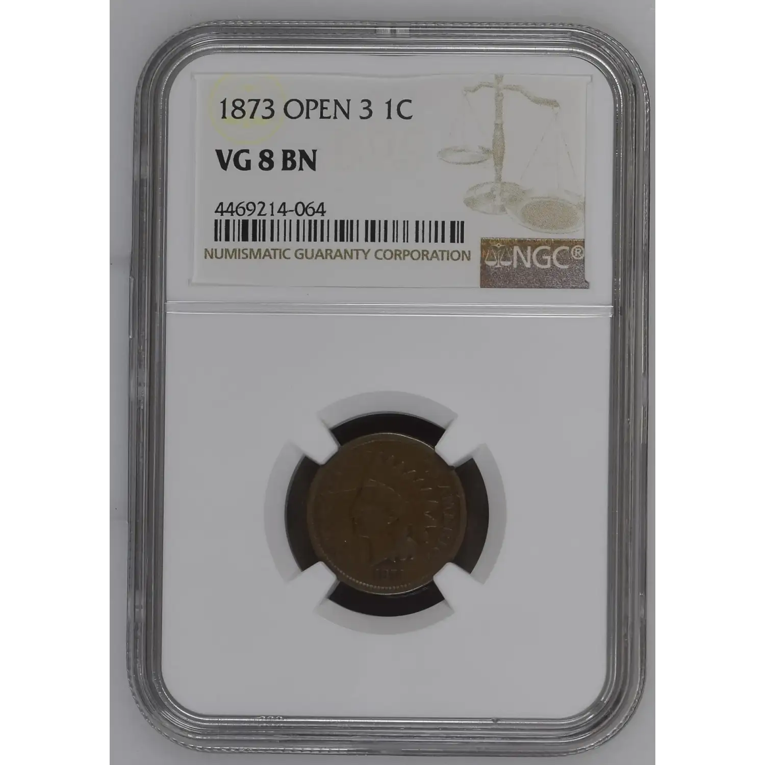 1873 Small Cents Indian Head NGC VG-8 BN