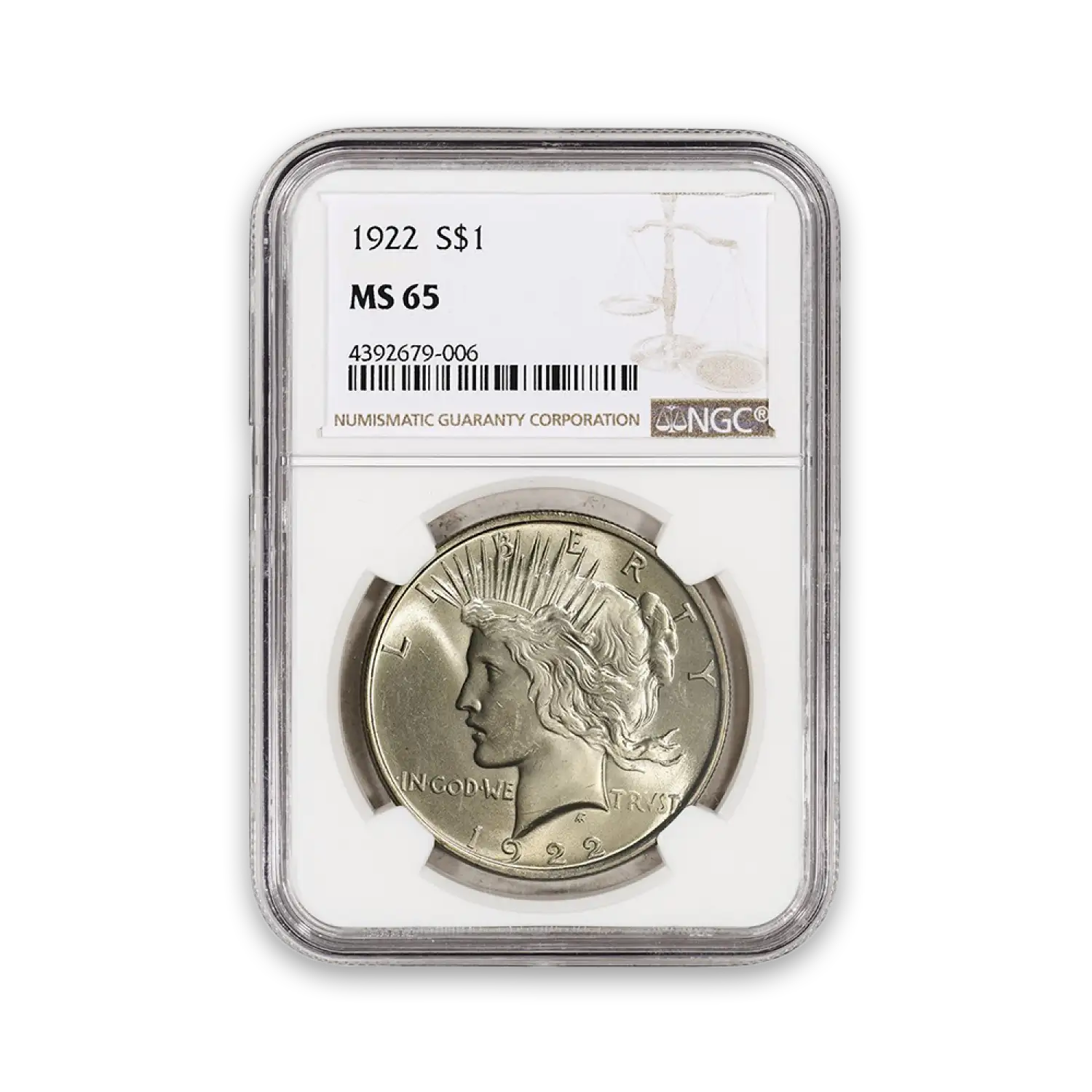 THE COIN YOU RECEIVE IS OUR CHOICE. IT WILL BE A COIN ESTIMATED TO BE OF THE GRADE / QUALITY INDICATED. THE IMAGE SHOWN IS AN EXAMPLE ONLY. Peace Dollar (1921 - 1935) - MS 65