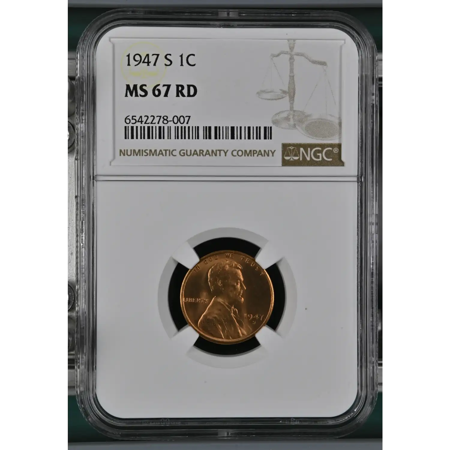 1947-S Small Cents Lincoln, Wheat Ears Reverse NGC MS-67 RD